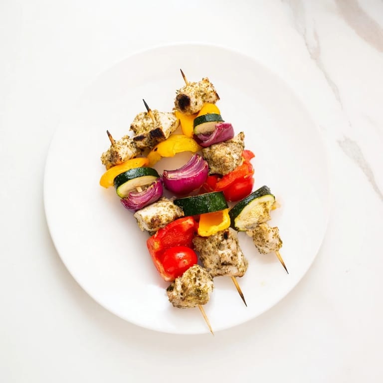 - Grill skewers for 12–15 minutes, turning occasionally, until chicken is cooked through and vegetables are slightly charred.