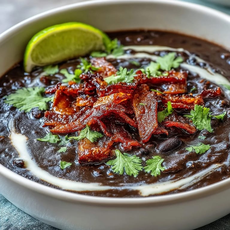 Save There's something about the smell of bacon hitting a pot that makes everything feel like it's going to be good. I stumbled onto this black bean soup one rainy Tuesday when I had nothing in the pantry except cans and the end of a bacon package, and somehow it turned into the kind of soup that made my kitchen smell so inviting that my neighbor actually knocked to ask what I was making. It's become my go-to when I want something that feels indulgent but comes together in under an hour, with layers of smoke and spice that sneak up on you with every spoonful.