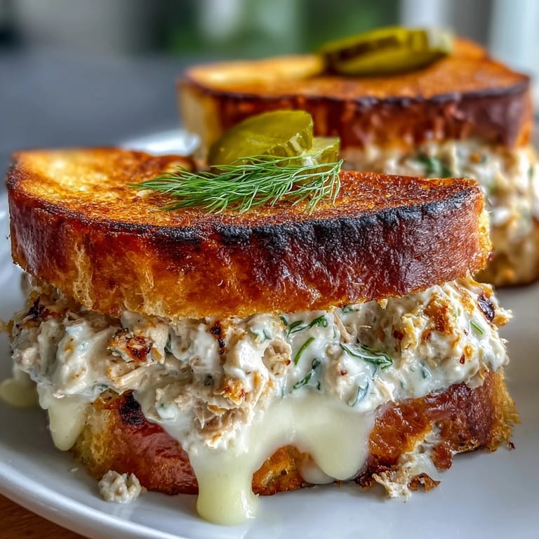 Save The sizzle of butter in a hot skillet always fills my kitchen with anticipation, but nothing quite compares to the aroma when a tuna melt is on the menu. One rainy weekday, craving something indulgent yet familiar, I decided to layer sharp cheddar and tangy pickles onto a creamy tuna salad nestled between slices of sourdough. Watching the bread turn golden, I realized how transformative the simplest ingredients could be. That first bite—crisp, rich, and briny—reaffirmed this sandwich as pure comfort. Even the dog seemed mesmerized by the inviting scent wafting from the pan.