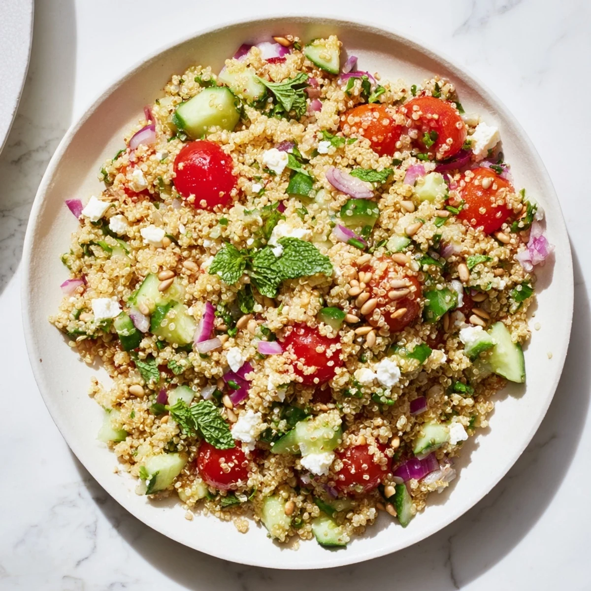 Save This salad beautifully balances nutritious quinoa with fresh produce and vibrant herbs. Each ingredient complements the others without overpowering, making it a versatile and crowd-pleasing choice. Whether served chilled after refrigeration or enjoyed fresh, the flavors deepen and meld, enhancing the overall experience.