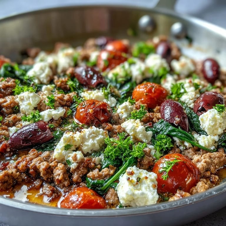 Save The smell of garlic and oregano hits differently when you're tired and hungry on a Wednesday night. I threw this skillet together on one of those evenings when the fridge felt bare but I still wanted something that tasted intentional. Ground chicken browned quickly, olives brought that briny punch I was craving, and feta melted into everything just enough to make it feel indulgent. It was done in less time than it took to talk myself out of ordering takeout. Now it's my default when I want Mediterranean flavors without the fuss.