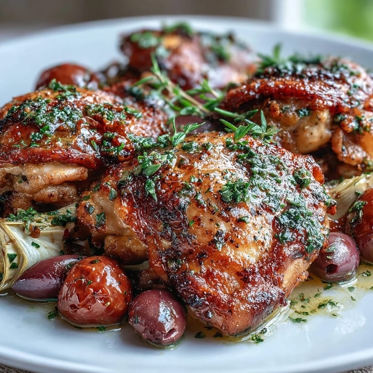 The beauty of this dish is that the chicken seasons the vegetables as it cooks, so everything tastes cohesive rather than like separate components thrown together. The skin protects the meat from drying out while the pan sauce keeps everything moist underneath, creating this perfect balance of textures that's surprisingly difficult to mess up. I've made this in cast iron, stainless steel, and ceramic, and it works beautifully in all three, though the cast iron holds heat the most evenly.