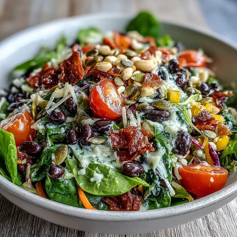 The real beauty of this salad is that it's less a recipe and more a framework for whatever you have hiding in your crisper drawer. I've made it with shredded beets instead of carrots, added roasted Brussels sprouts when tomatoes weren't ripe, swapped quinoa for farro on weeks when that's what was open in my pantry. The structure stays the same—grains, vegetables, beans, crunch, dressing—but your version will taste distinctly like your kitchen and your preferences.
