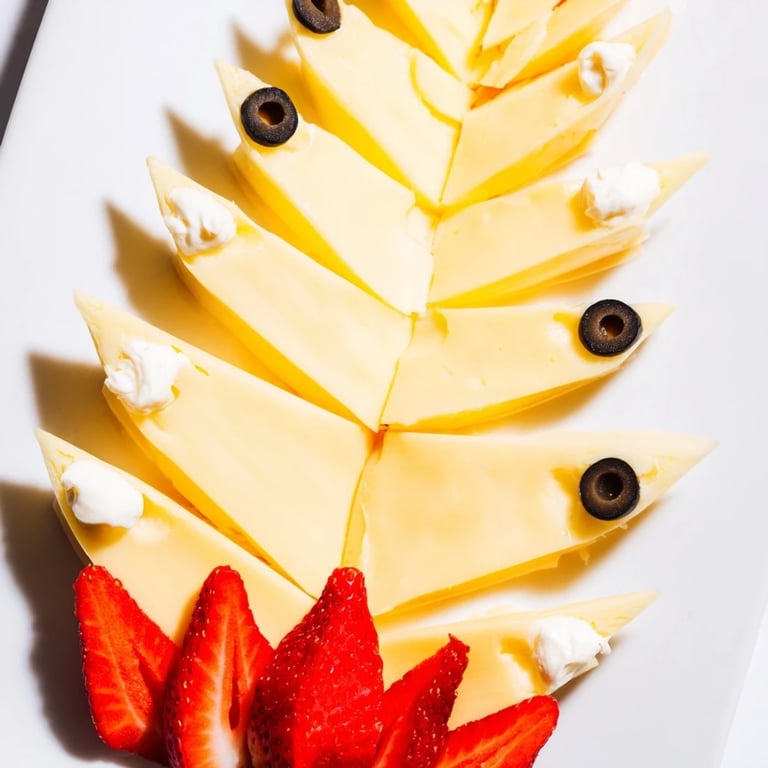 - Fan your strawberry slices out from the base of the rocket in a dynamic burst, as if they're actually shooting out. This is where the visual magic happens—the red against the orange-yellow cheese makes it feel alive.