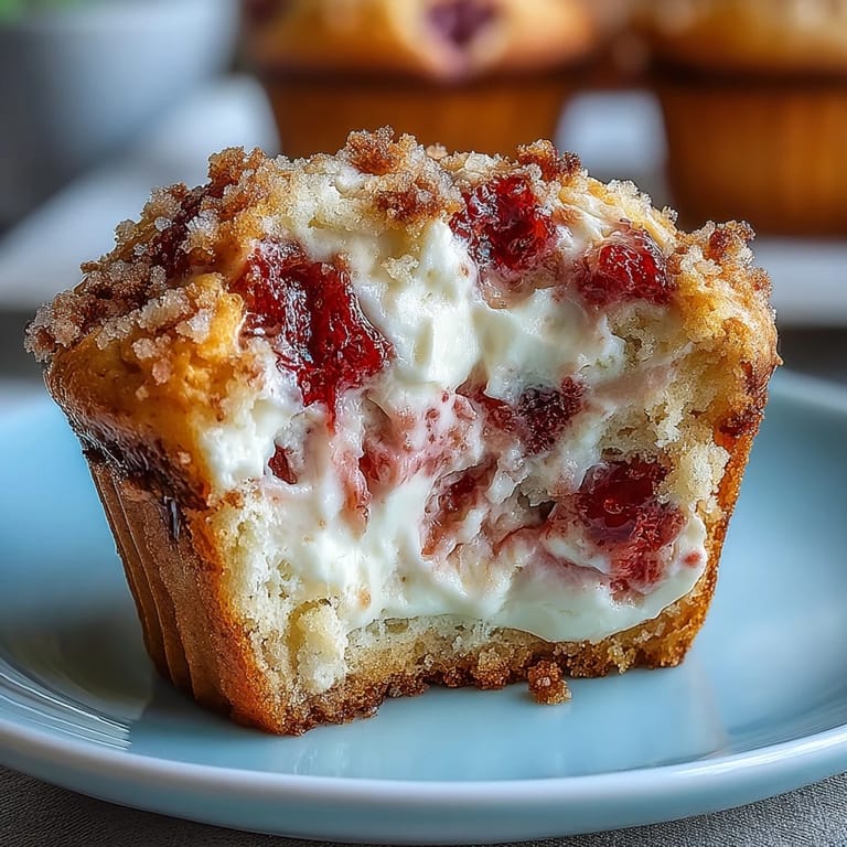 Save There's something about the smell of strawberries baking that makes a kitchen feel like home, even if you're just learning to bake. I discovered these muffins by accident one spring morning when I had cream cheese left over from making cheesecake and a punnet of strawberries that needed using. The idea of swirling them together seemed wild at first, but the result was so good that I've been making them ever since for anyone willing to show up before noon.